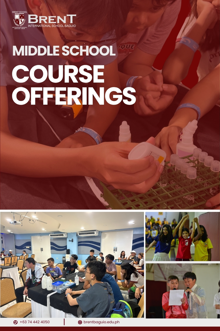 The curriculum for Middle School is designed to provide the foundation for students who will pursue the International Baccalaureate (IB) Diploma Program, through emphasis on discovery, investigation, and skills-based courses. Middle School students take eight subjects each semester. English, Science, Math, Social Science, Foreign Language (Grade 7 and 8) and Physical Education are all required, full year courses. Religious Studies, Information and Computer Technology (ICT), Art and Music are all one semester courses.