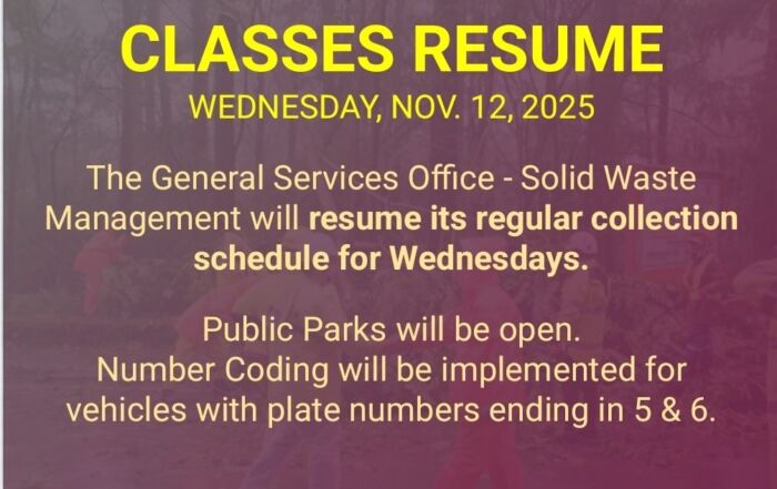 Week of November 10 to 21, 2025: As we head into the weekend, we continue to keep everyone’s safety in mind with the developing weather system. Thank you for your support, cooperation, and readiness as we adjust to ensure safety and learning.